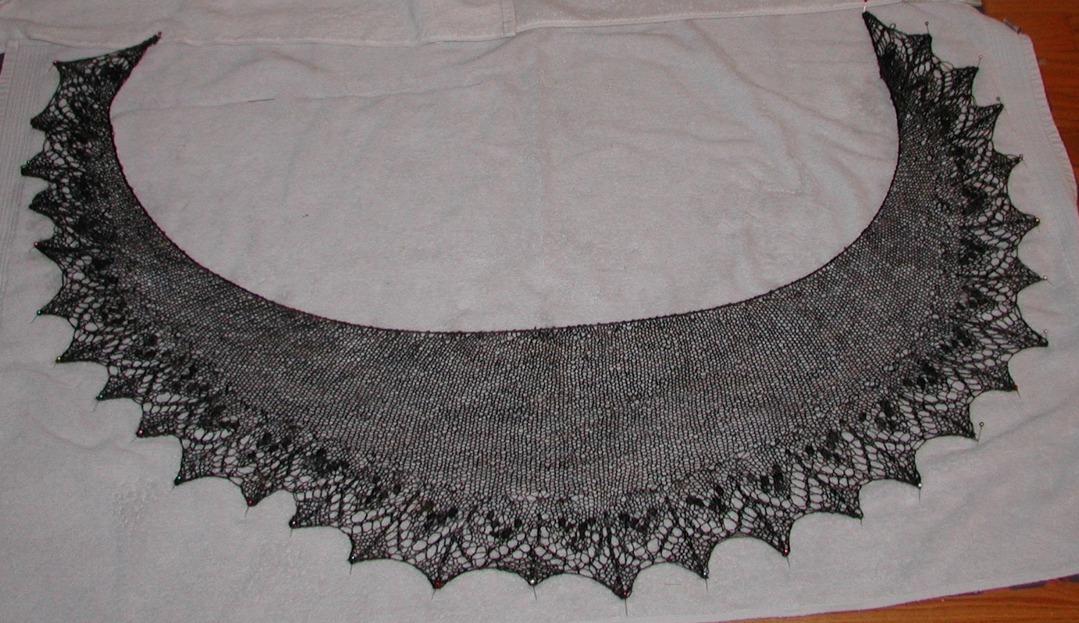 Katy brought in some projects that she made a while ago. Here is the Lady Eleanor shawl from Scarf Style out of Noro Silk Garden